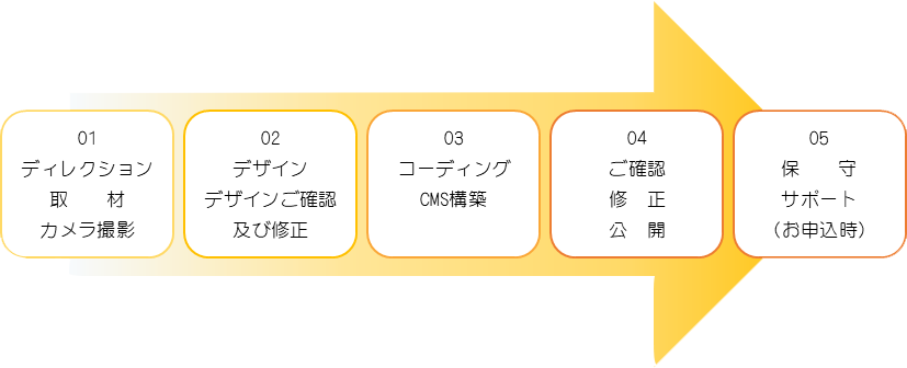 | 04 | 組みあがったホームページをご確認いただき、コンテンツ部分の修正を行います。修正が完了したら完成となります。 |